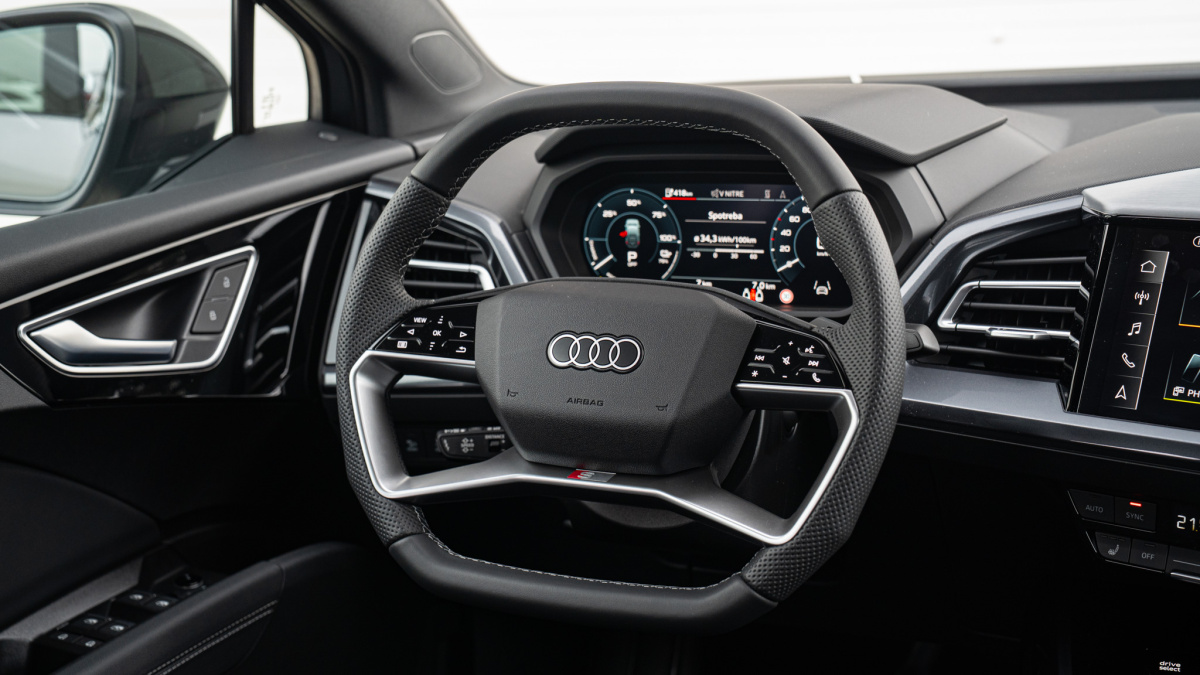 - Športový kožený volant s dvojitými lúčmi a multifunkciou, v hornej aj spodnej časti zrezaný