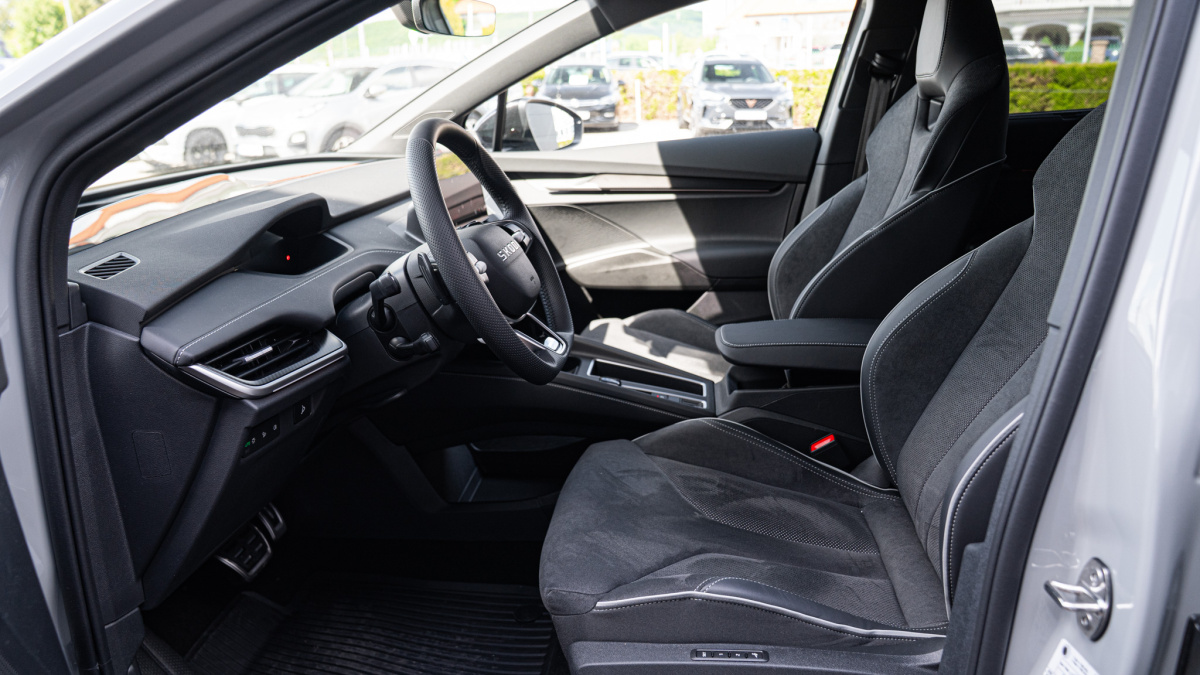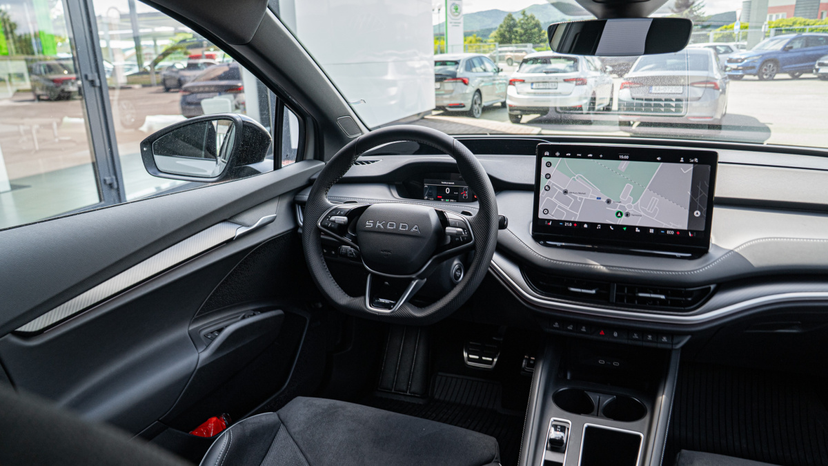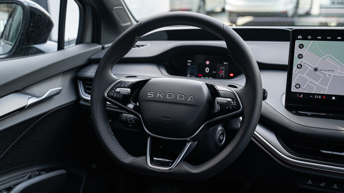 - 3-ramenný športový vyhrievaný volant so sivým prešívaním a ovládaním rekuperácie